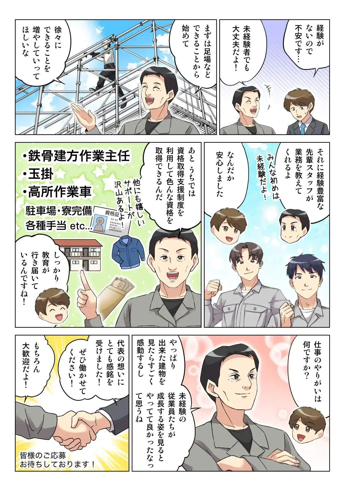 鳶2級などの資格を取り、ある程度大きな現場なども徐々に経験していきます。