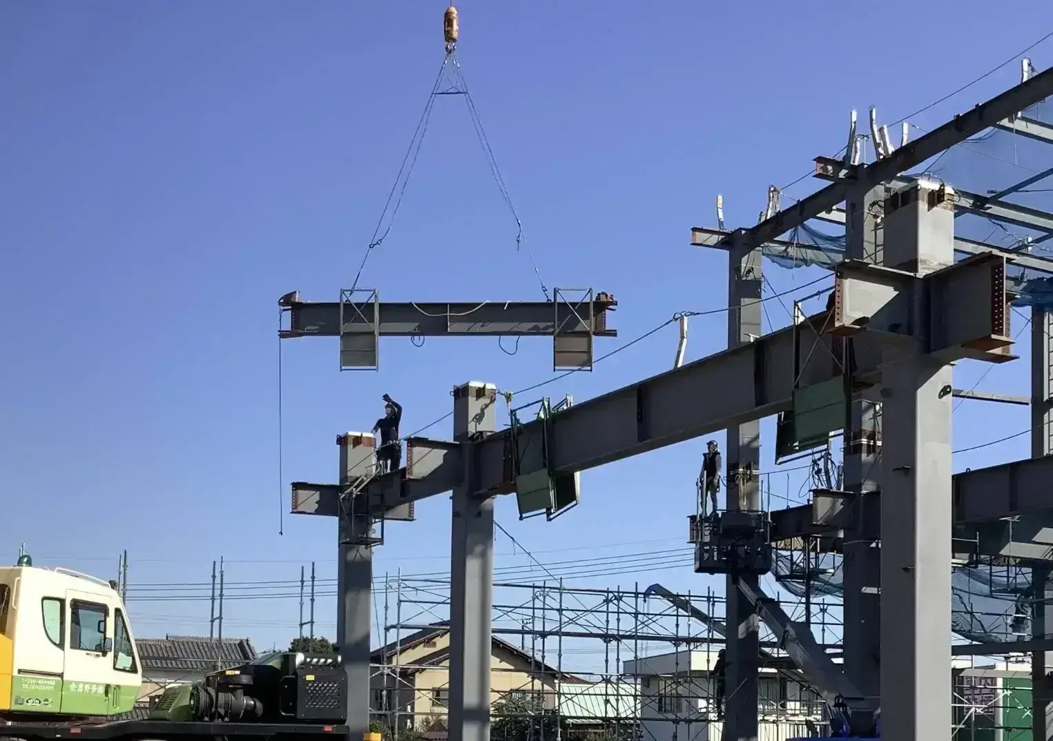 鳶の仕事は、足場を設置する足場鳶、高所で溶接作業などを行う鍛冶鳶、クレーンを使用して鉄骨を運び組み立てる鉄骨鳶の3種類があります。弊社は3つ目の鉄骨鳶で建築物に直接関わる仕事を行っています。